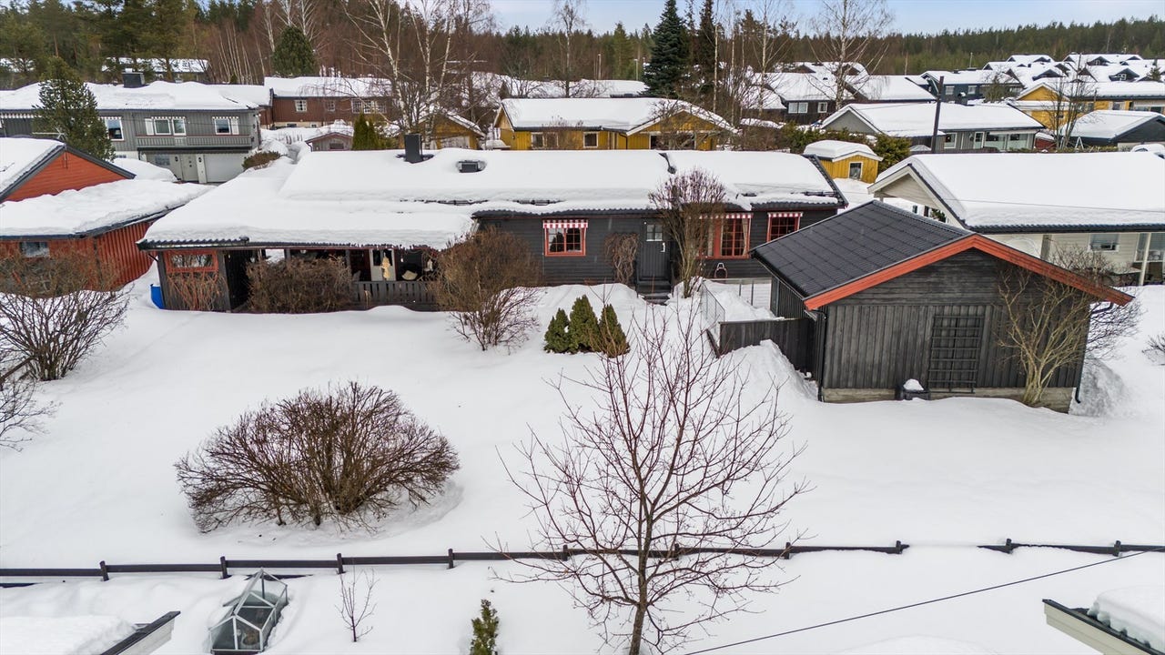 Enebolig: Oppført i 1973. Byggegrunnen fremstår med stedbundne jordmasser med høy sand og siltsortering. Ringmurer i betong. Utvendige overflater uten overflatebehandlinger. Utvendige ringmurer fremstår uten etablert dreneringssystem, ingen synlige utvendige fuktsikringer. Yttervegger i bindingsverk med utvendig liggende kledningsbord. Utvendige fasader fremstår uten etablert lufting. Opplyst sist overflatebehandlet rundt 2018. Saltakkonstruksjon med kaldtloft. Lufting av kalftloft via spalter ved raft og ventiler i gavlene. Luftespalter mot raft uten insektnetting. Ingen etablerte gangbaner. Sperretakkonstruksjoner utført med prefabrikkerte takstoler. Himling mot kaldtloft isolert med mineralull. Taktekking med metallplater fra 2010 (Decra plater). Renner og nedløp av metall fra 2010. Krypkjeller under boligen med adkomst via utsparing i ringmur mot vest. Vinduer med isolerglass hovedsakelig fra opprinnelig byggeår. Etasjeskille med trebjelkelag. Innvendig ett-løps elementpipe.