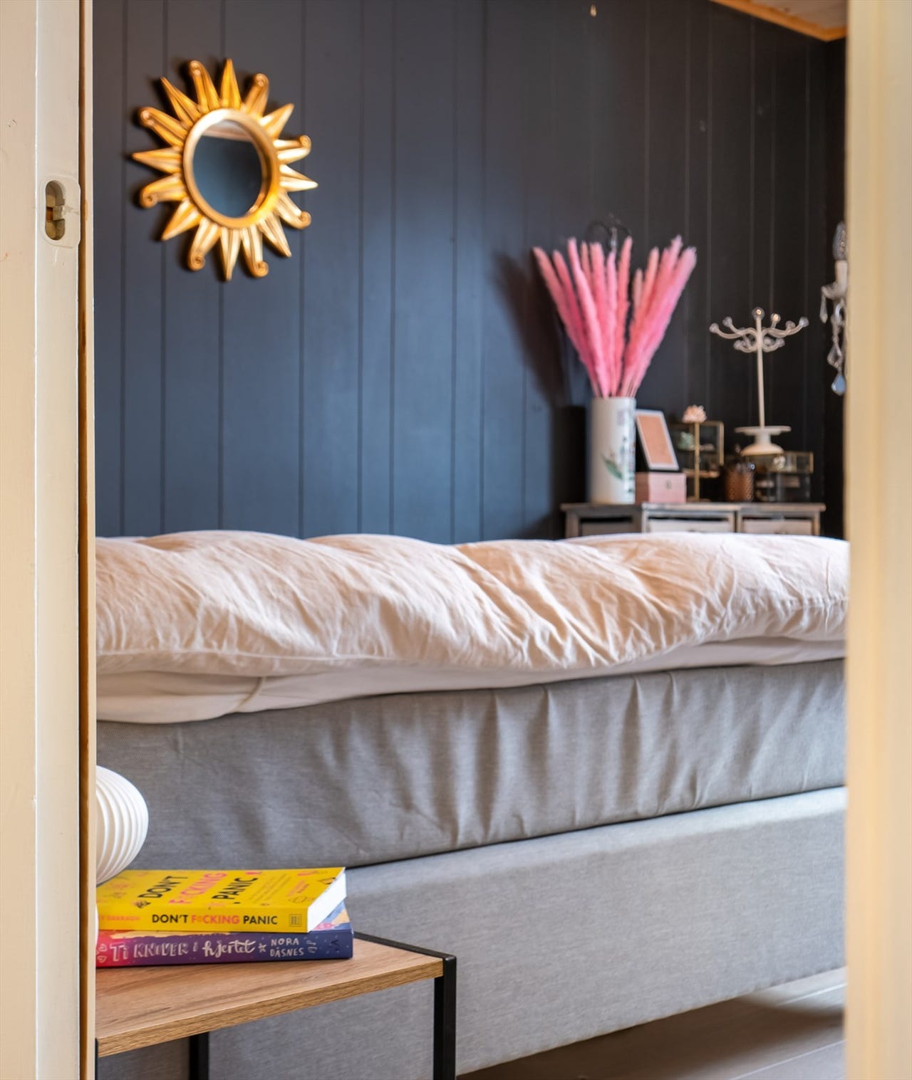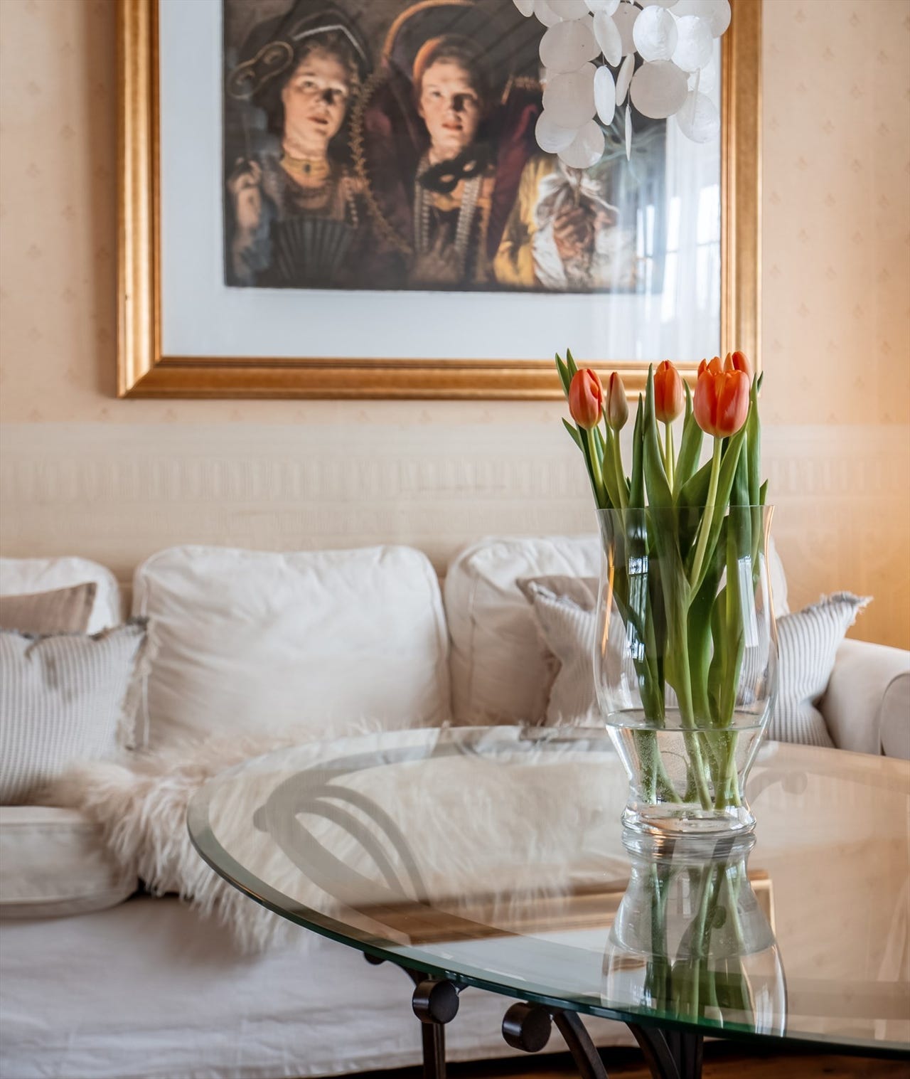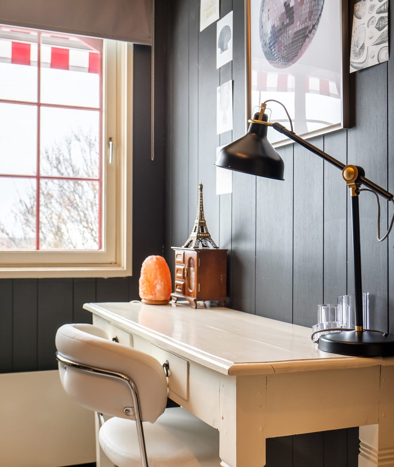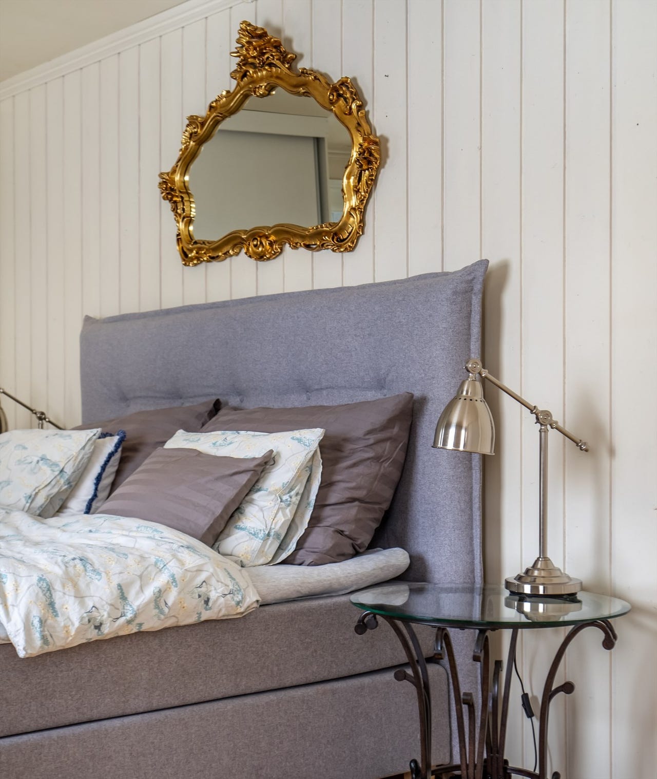 Boligen har tre romslige og fine soverom. Lyst hovedsoverommet har godt plass til dobbeltseng. Integrerte skyvedørsgarderober. Direkte adkomst til badet. Det andre soverommet er malt i noe mørkere fargetoner og har god plass til soveromsmøblement og evt. kontormøblement dersom en ønsker det. Det tredje soverommet er i dag innredet og benyttet som stue, og har også direkte adkomst til badet.