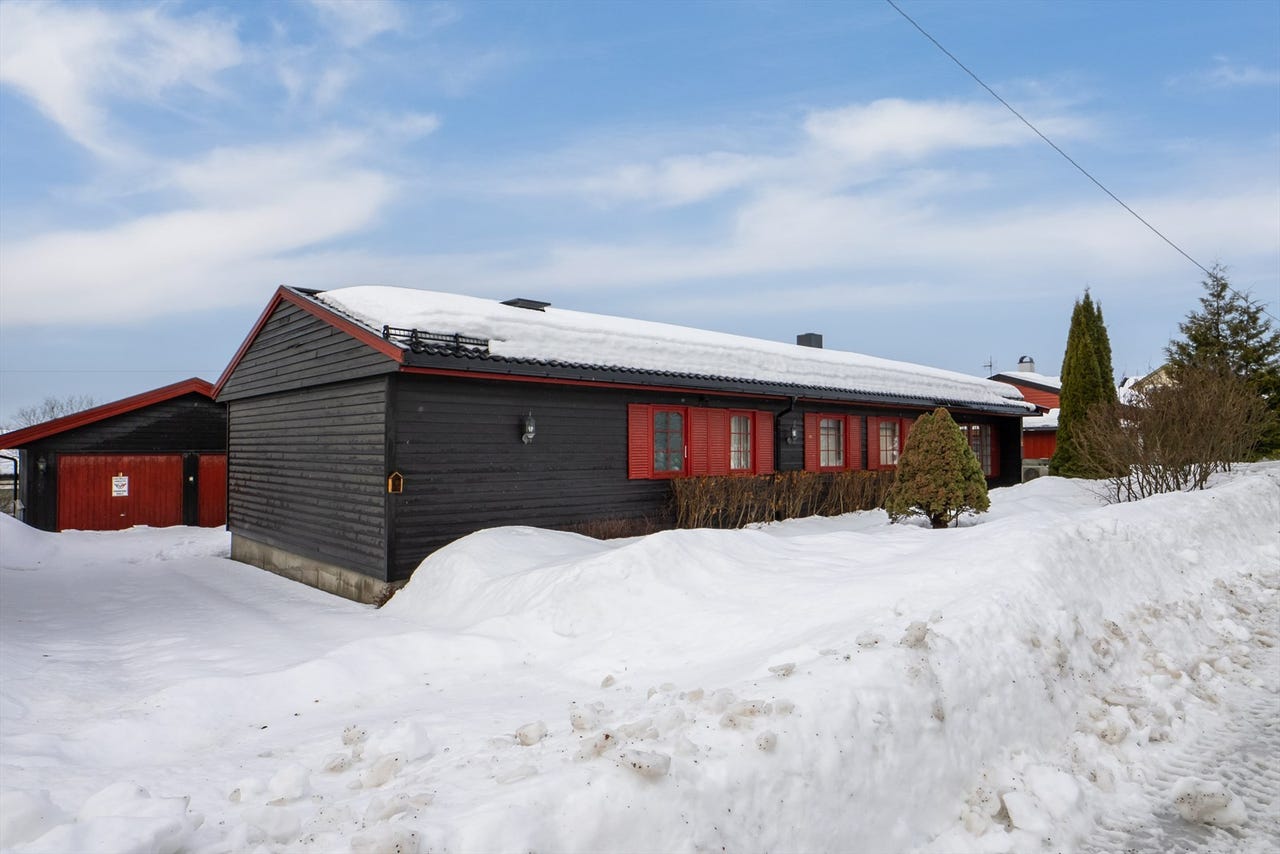 Her kan vi presentere en trivelig enebolig over et plan, med stue, spisestue, kjøkken, tre soverom, bad, toalettrom og badstue. Oppvarming med strøm og vedfyring. Varmepumpe i spisestuen. Elektrisk gulvvarme på badet. Romslig, overbygget terrasse. Inntilbygget carport og frittstående dobbelgarasje.