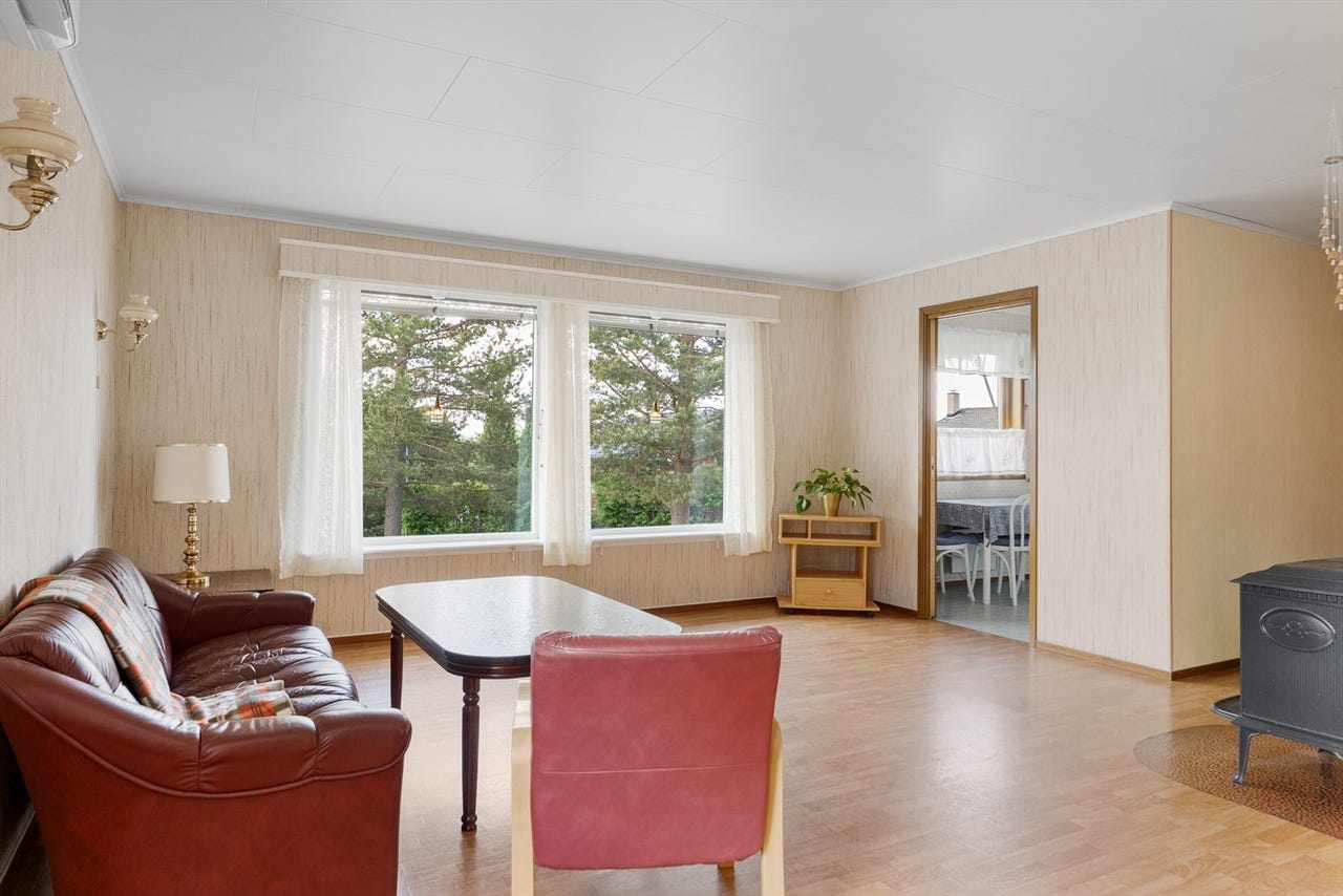 Her har vi gleden av å presentere en enebolig over ett plan med kjeller. Boligen har stue, kjellerstue, kjøkken, bad, vaskerom og to soverom, samt flere boder og lagringsplass i kjelleren. Enebolig har noe behov for modernisering. Romslig tomt med fine solforhold. Kort vei til naturen og fine turområder.