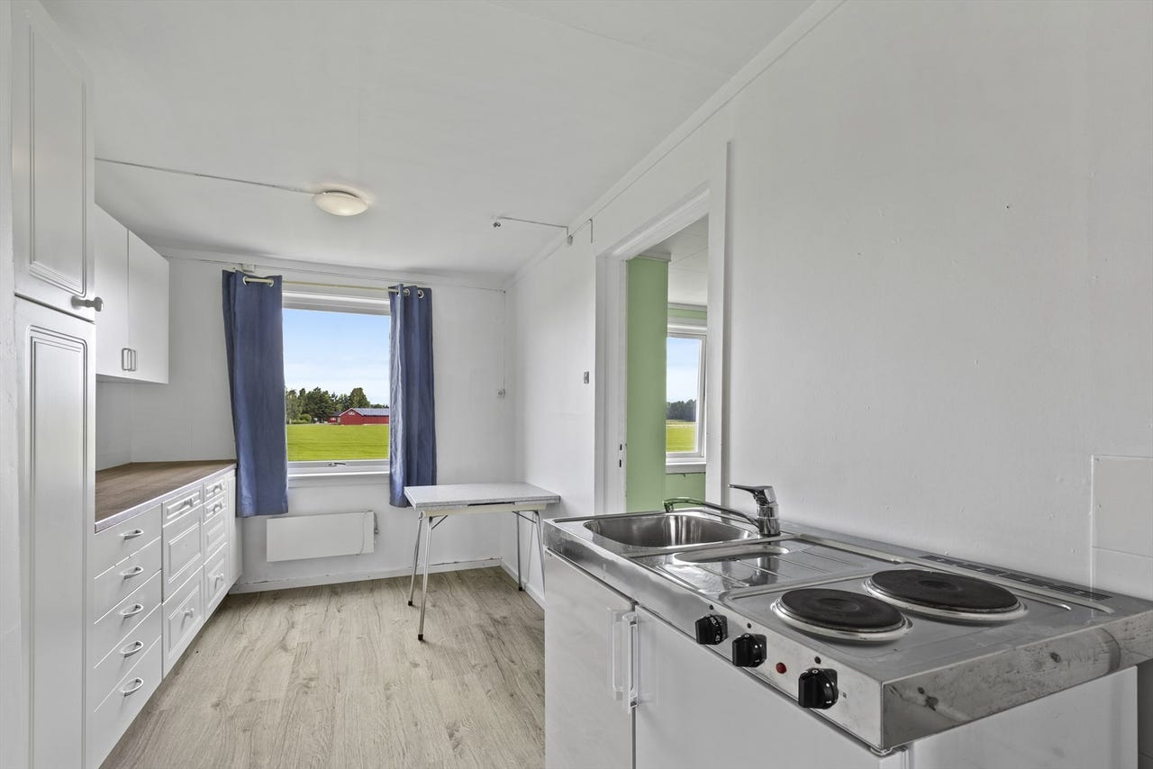 Hybelkjøkken i 2. etasje har adkomst fra trappehus og tilkomst til soverom 3, som i dag brukes som oppholdsrom, og soverom 4. Kjøkkenet har enkel innredning med hybelkjøkken med 2-platers koketopp, vaskekum i metal med kjøleskap og underskap. Kjøkkenbenk med skuffer underskap og et høyskap. Utslagsvask ved siden av hybelkjøkken. Det er 1-stav laminat på gulv, malt tapet på vegg og malte plater i himling.