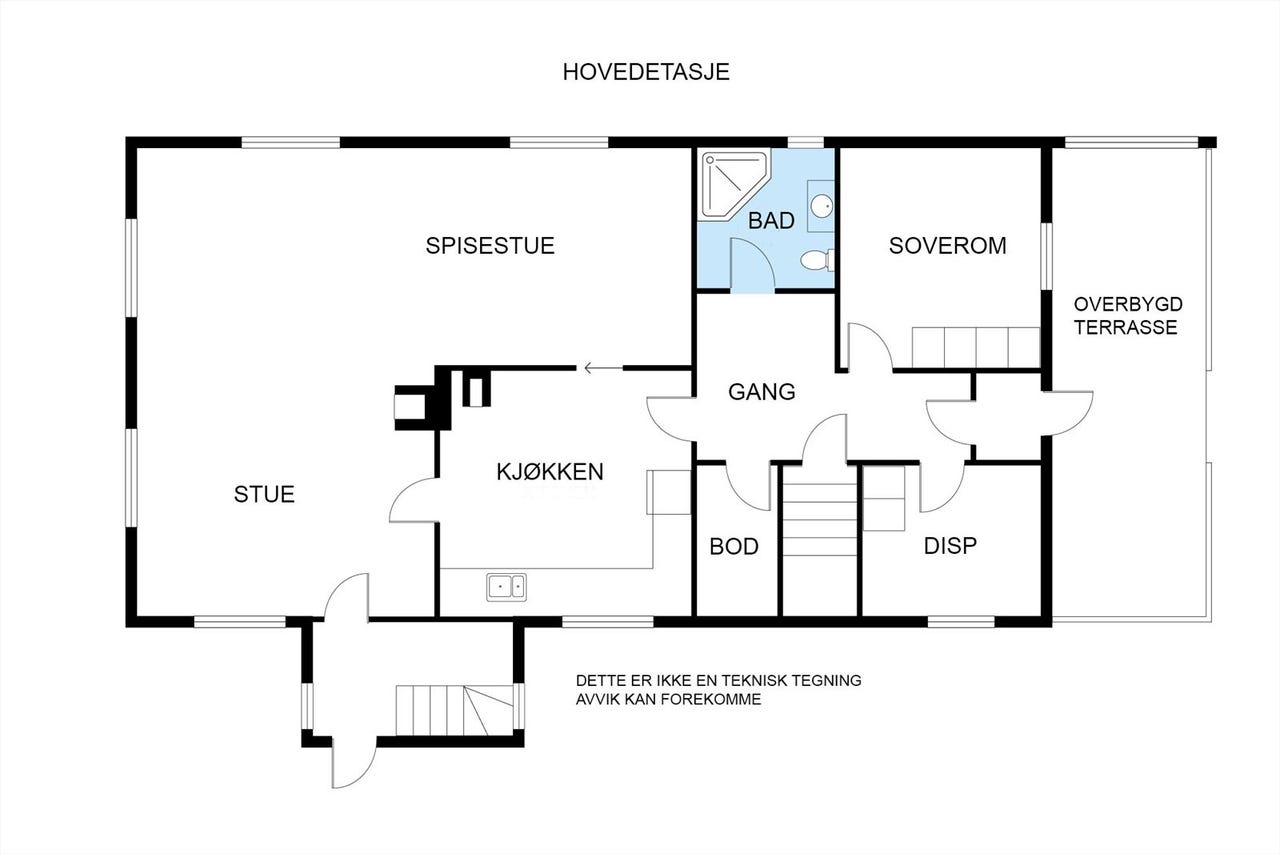 - Våtrom: Baderom av eldre og ukjent dato. Det er foretatt fuktsøk og visuelle observasjoner på overflater på badet, uten å registrere symptomer på avvik. Med bakgrunn av alder og påviste forhold er restlevetiden på badet usikker.