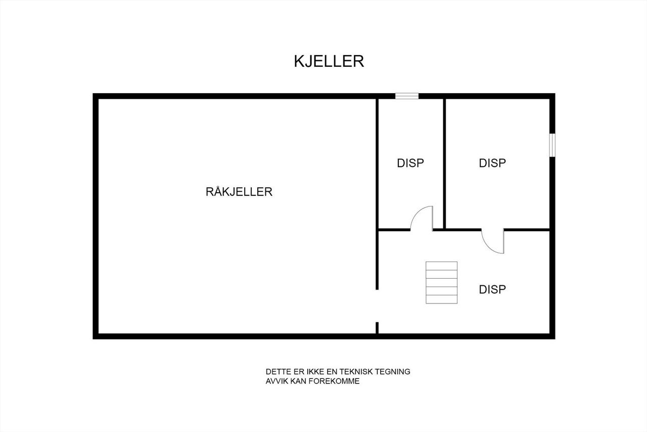 - Trapp: Kjellertrapp: Det er ikke etablert rekkverk i trappen. Kjellertrapp mot betonggulv med fuktopptrekk i trappevanger.