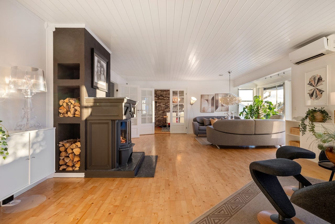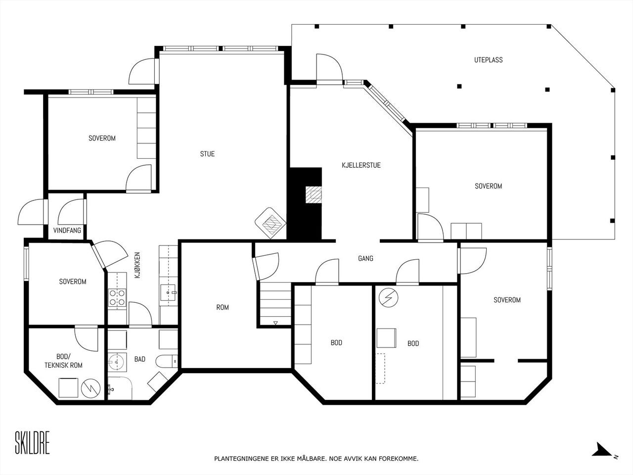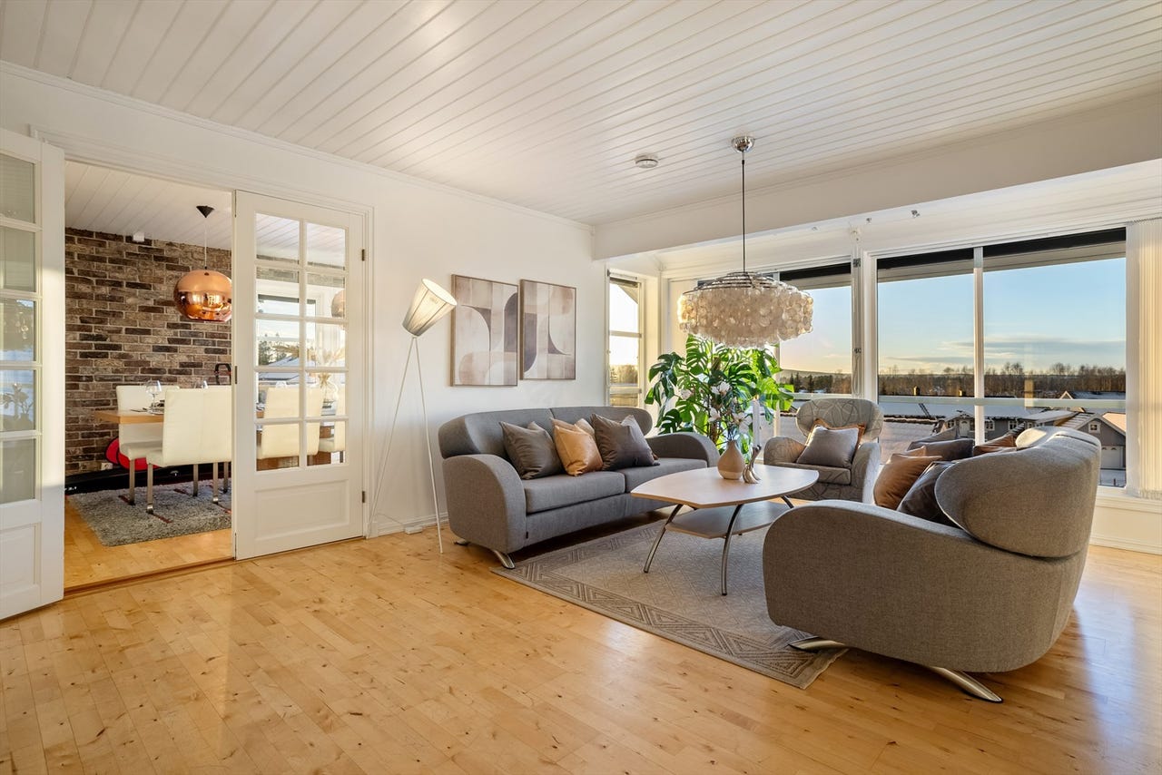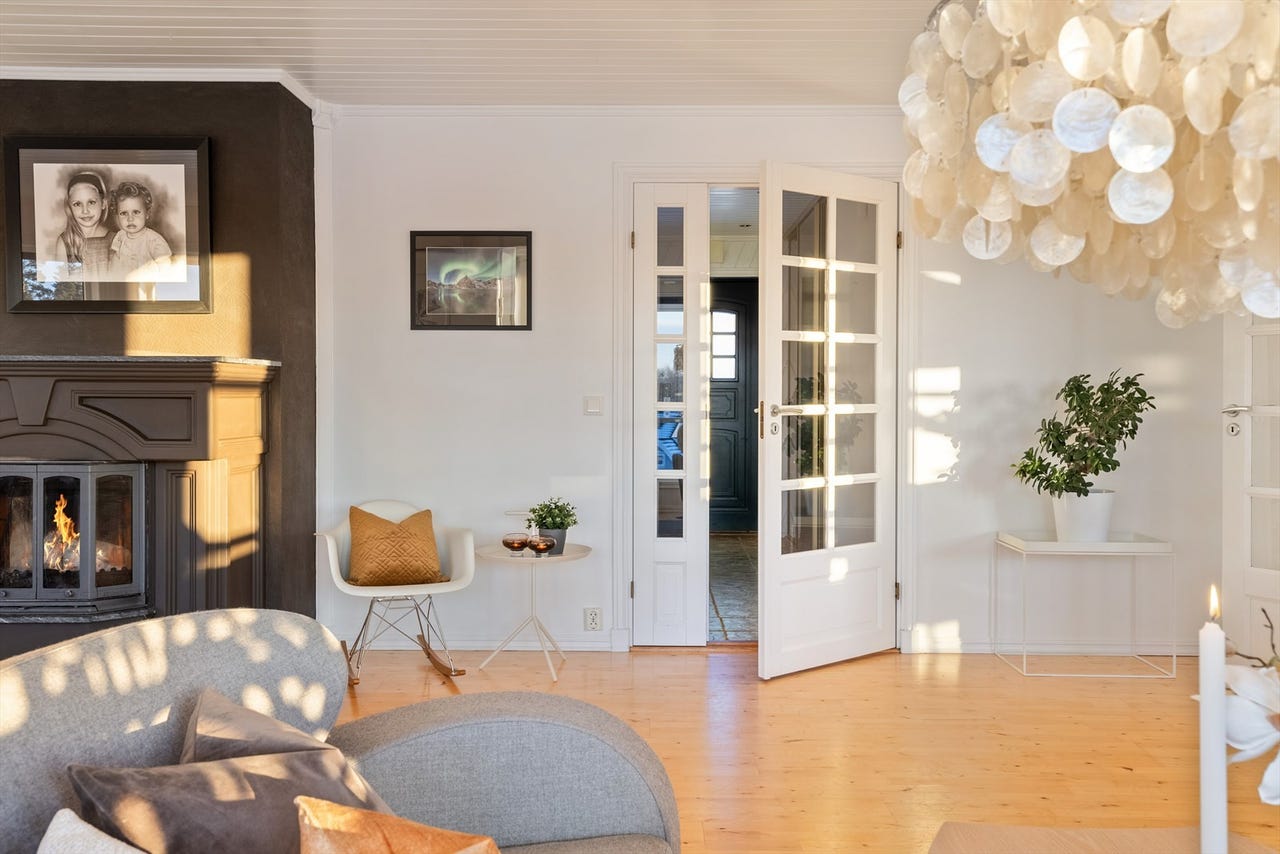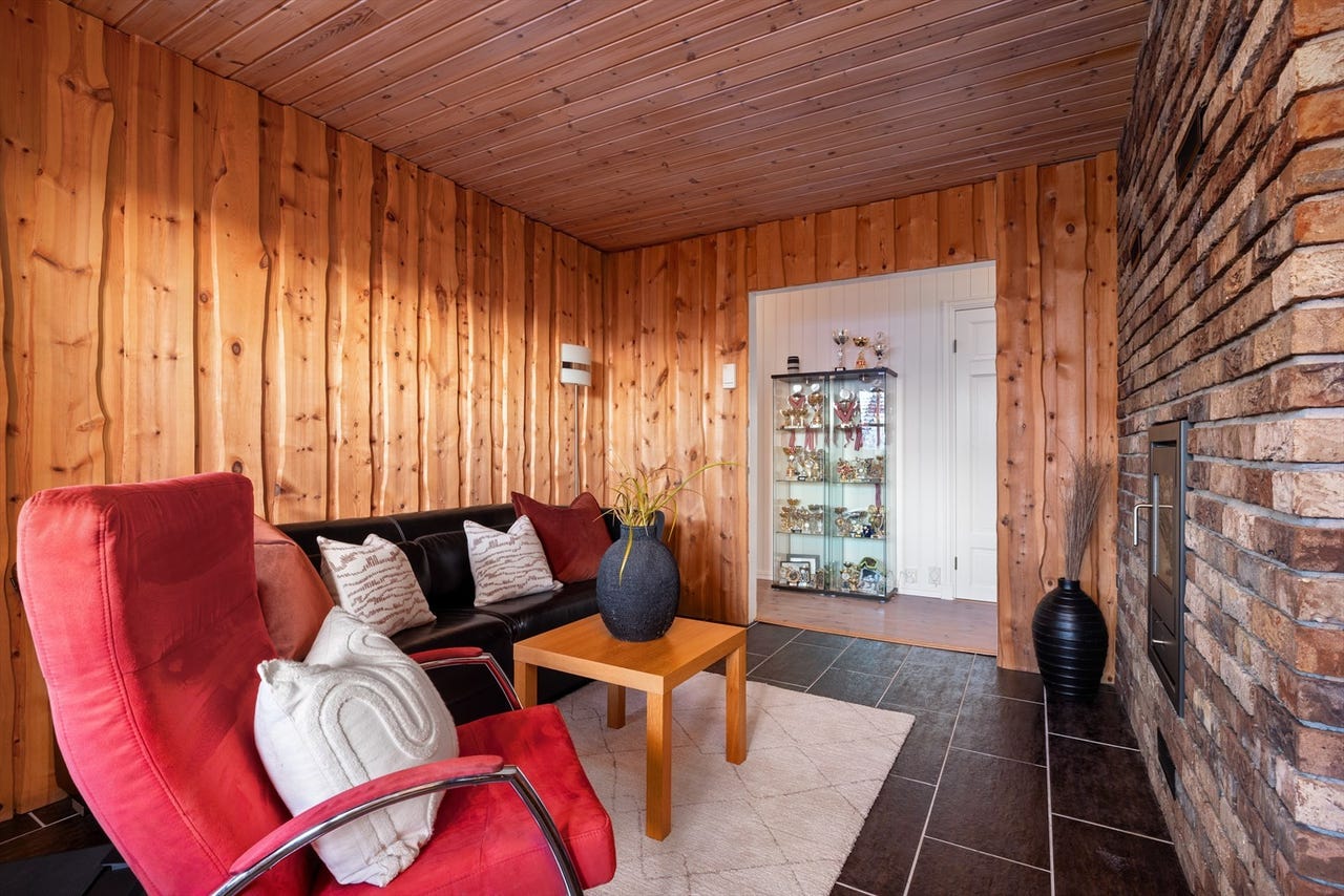 Her kan vi presentere en stor, unik arkitekttegnet enebolig. Fin utsikt og romslig tomt. Boligen er godt vedlikeholdt, og har en god planløsning med blant annet stue, spisestue, TV-stue, kjøkken, bad, vaskerom, toalettrom, kjølerom, 4 soverom og kjellerstue. Utleiedel med egen inngang som gir gode muligheter for leieinntekter. Opparbeidet uteområde brosteinsbelagt innkjøring, og hage med plen og diverse beplantning. Isolert frittstående dobbel garasje med boder.