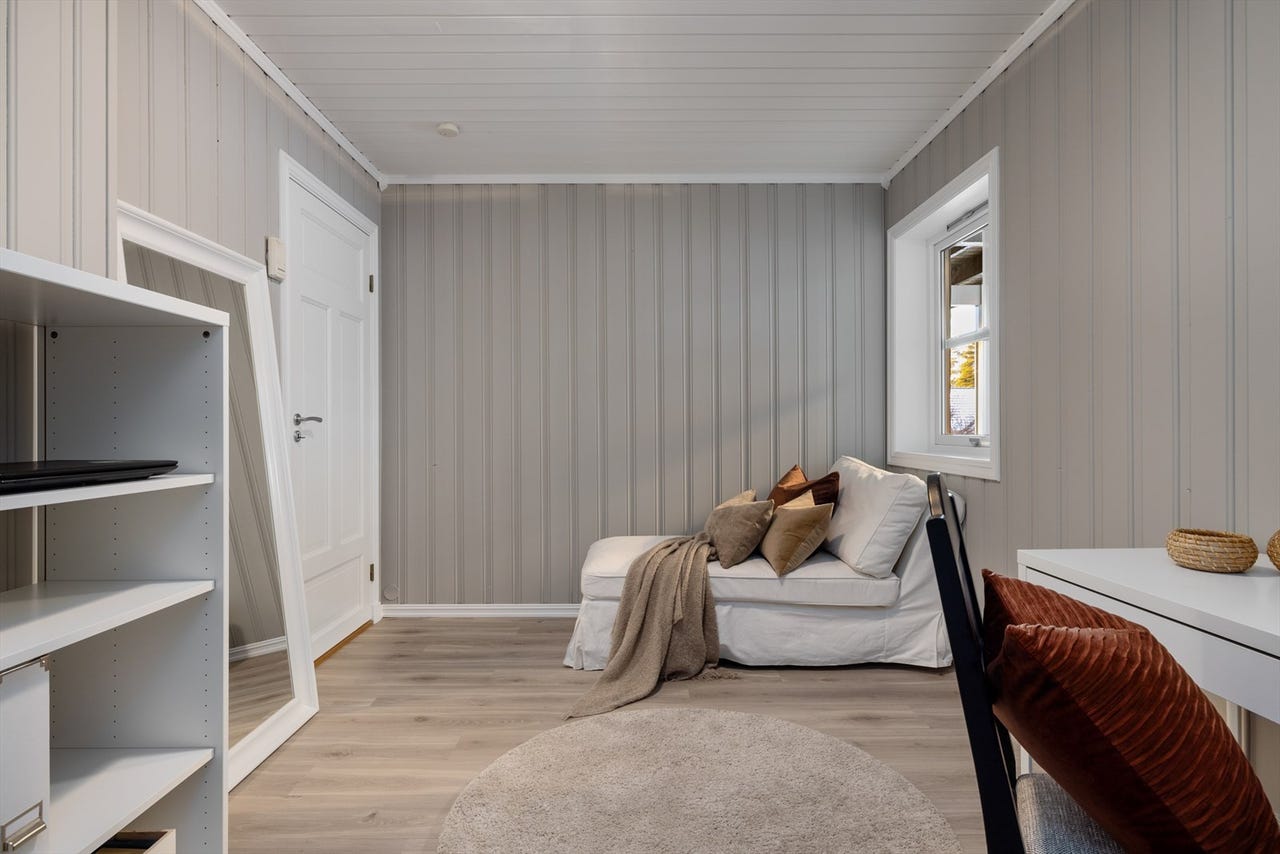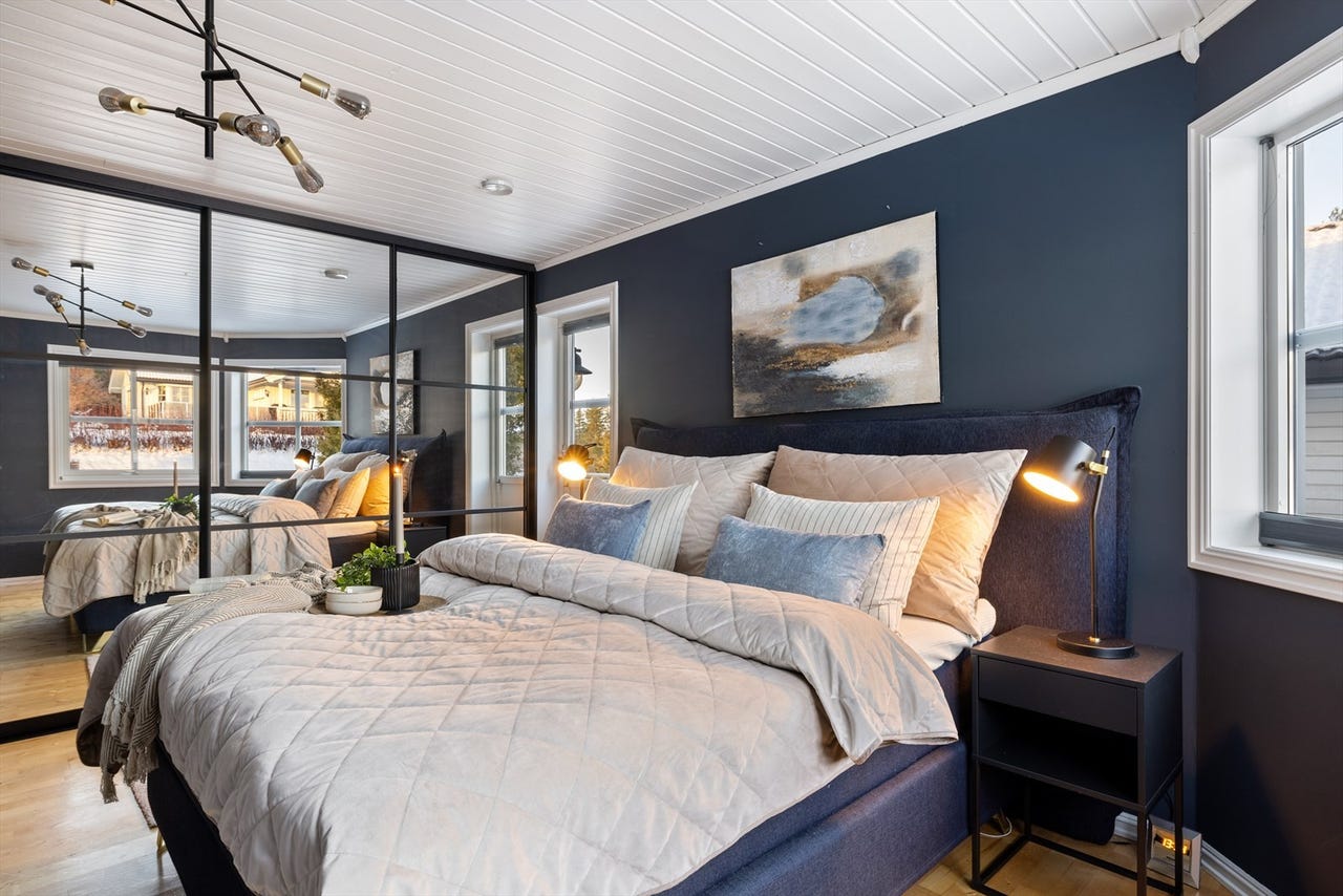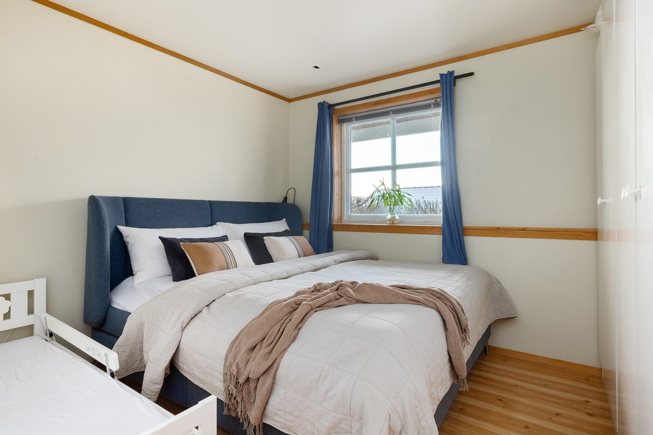 Boligen har til sammen 6 soverom, hvorav 4 er i hovedboligen. Alle rommene er romslige og har god plass til det en måtte ønske av soveromsmøbler.