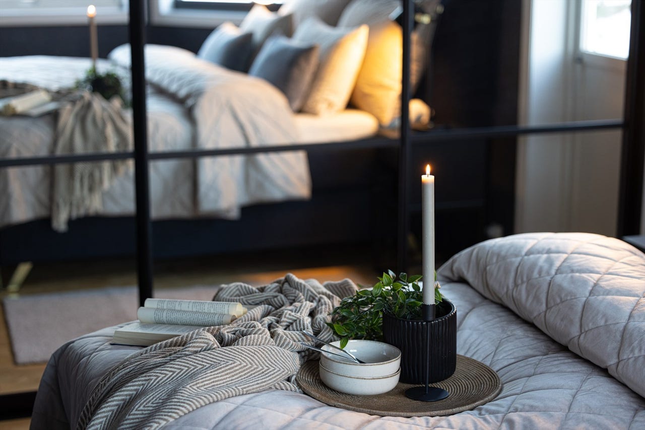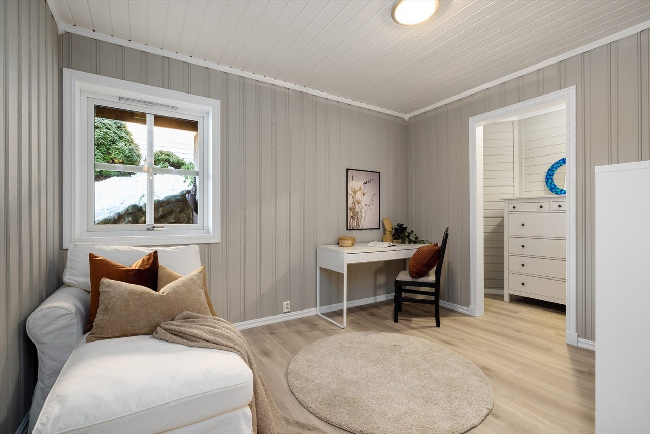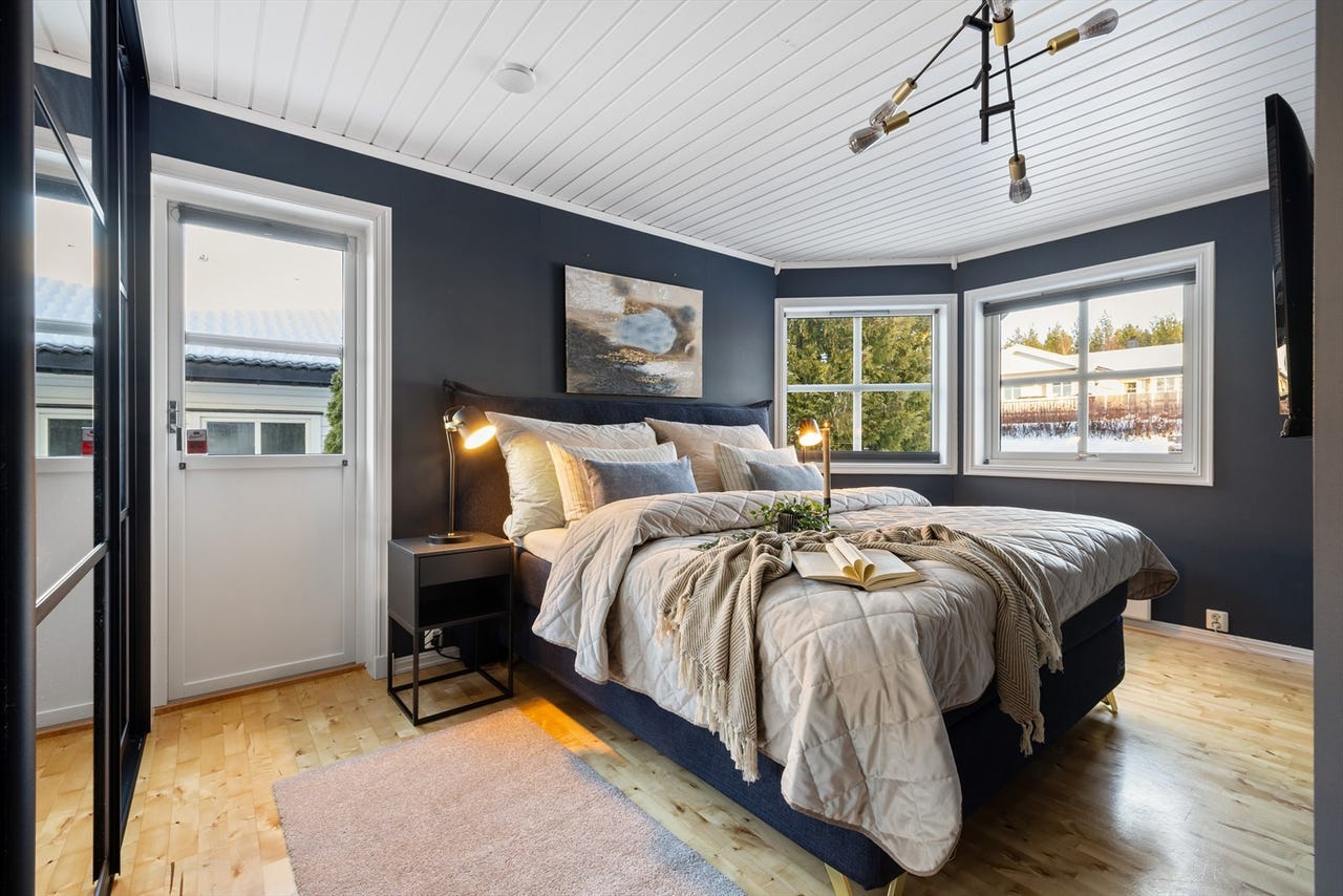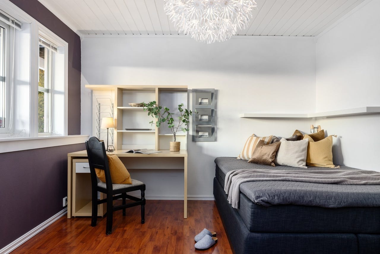 Boligen har til sammen 6 soverom, hvorav 4 er i hovedboligen. Alle rommene er romslige og har god plass til det en måtte ønske av soveromsmøbler.