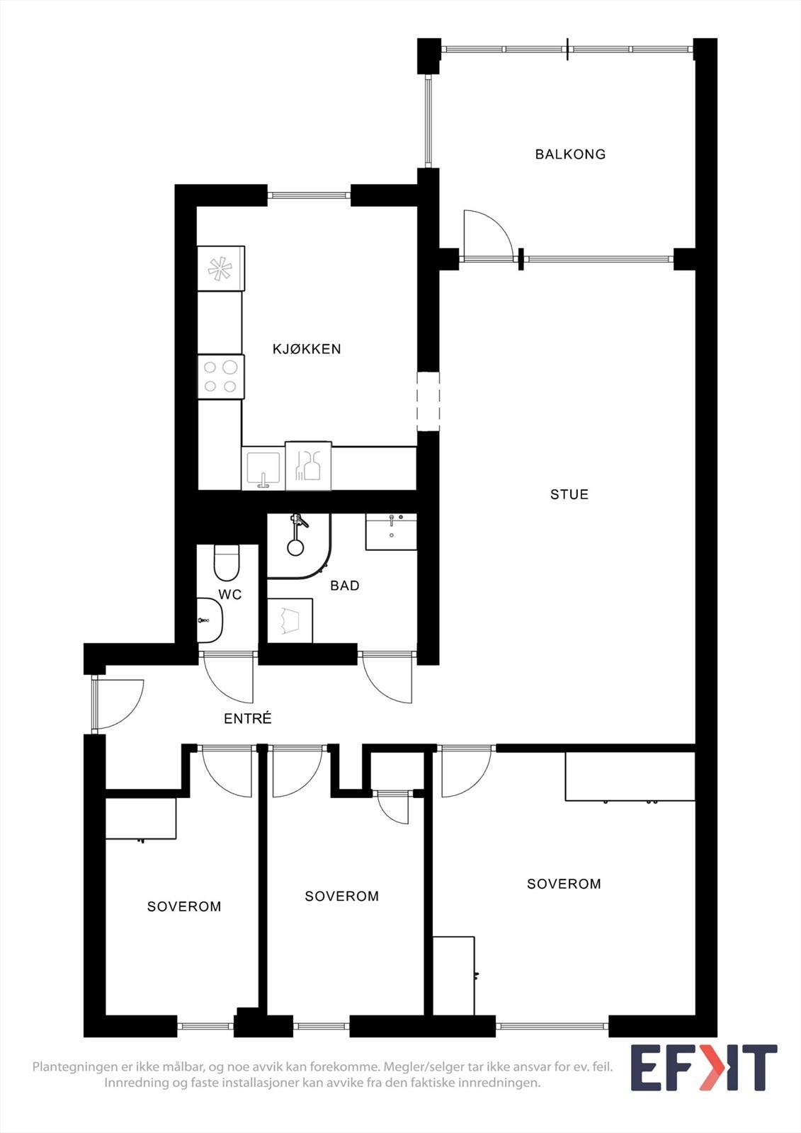 Leiligheten har tre soverom.