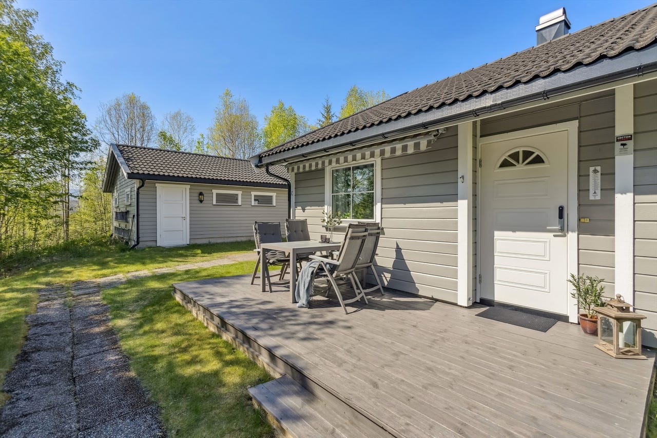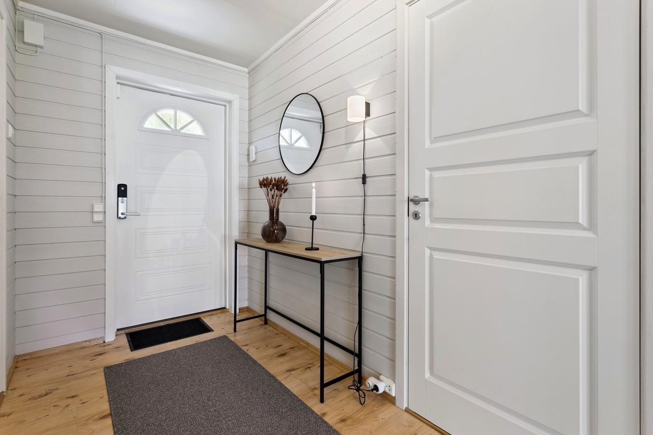 Her kan vi presentere en velholdt vertikaldelt tomannsbolig med stue, kjøkken, bad, to soverom, gang og entre. Privat garasjeplass og bod ved felles garasjebygg.