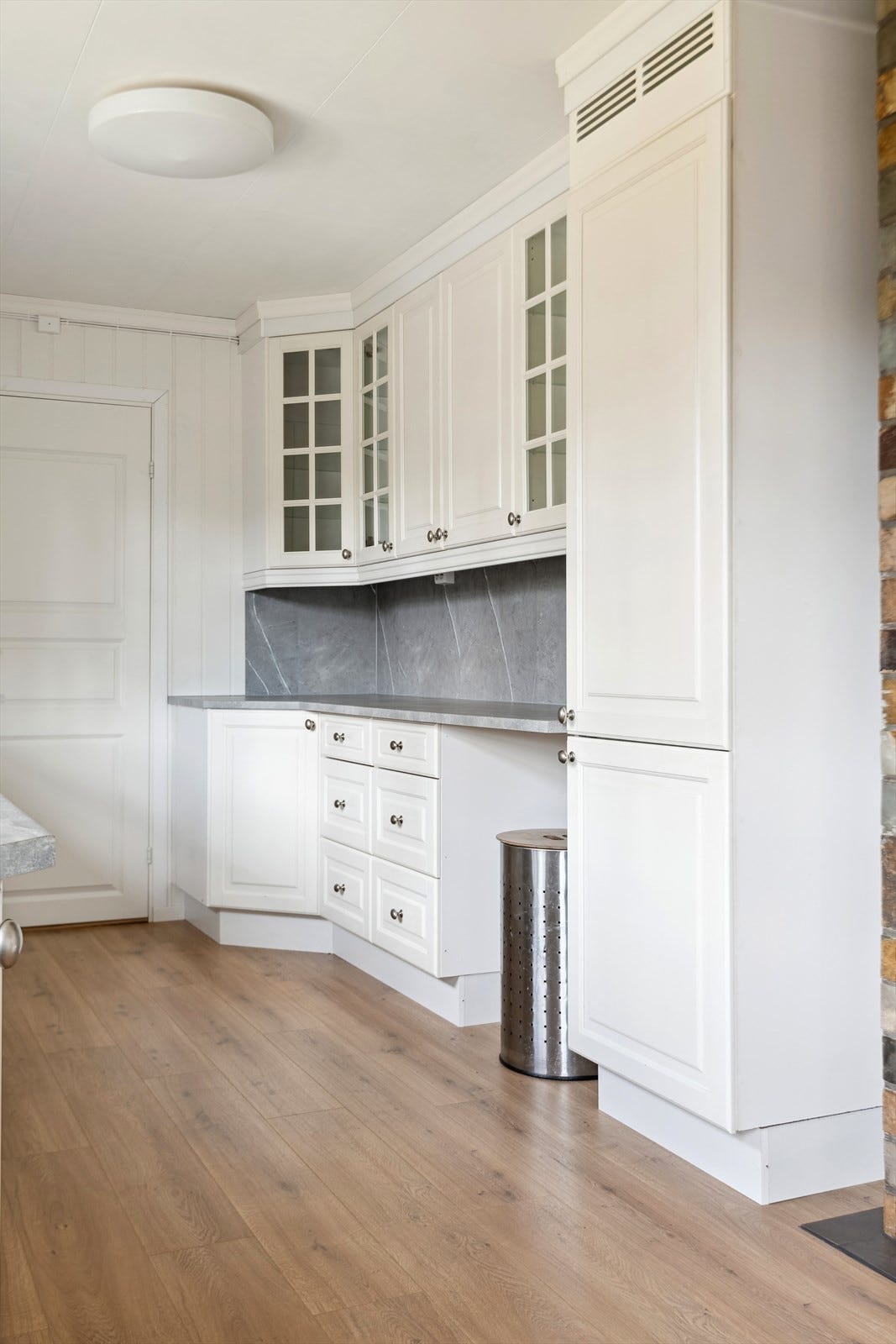 blandebatteri, skuffer og opplegg for vaskemaskin. Elektrisk styrt vifte.