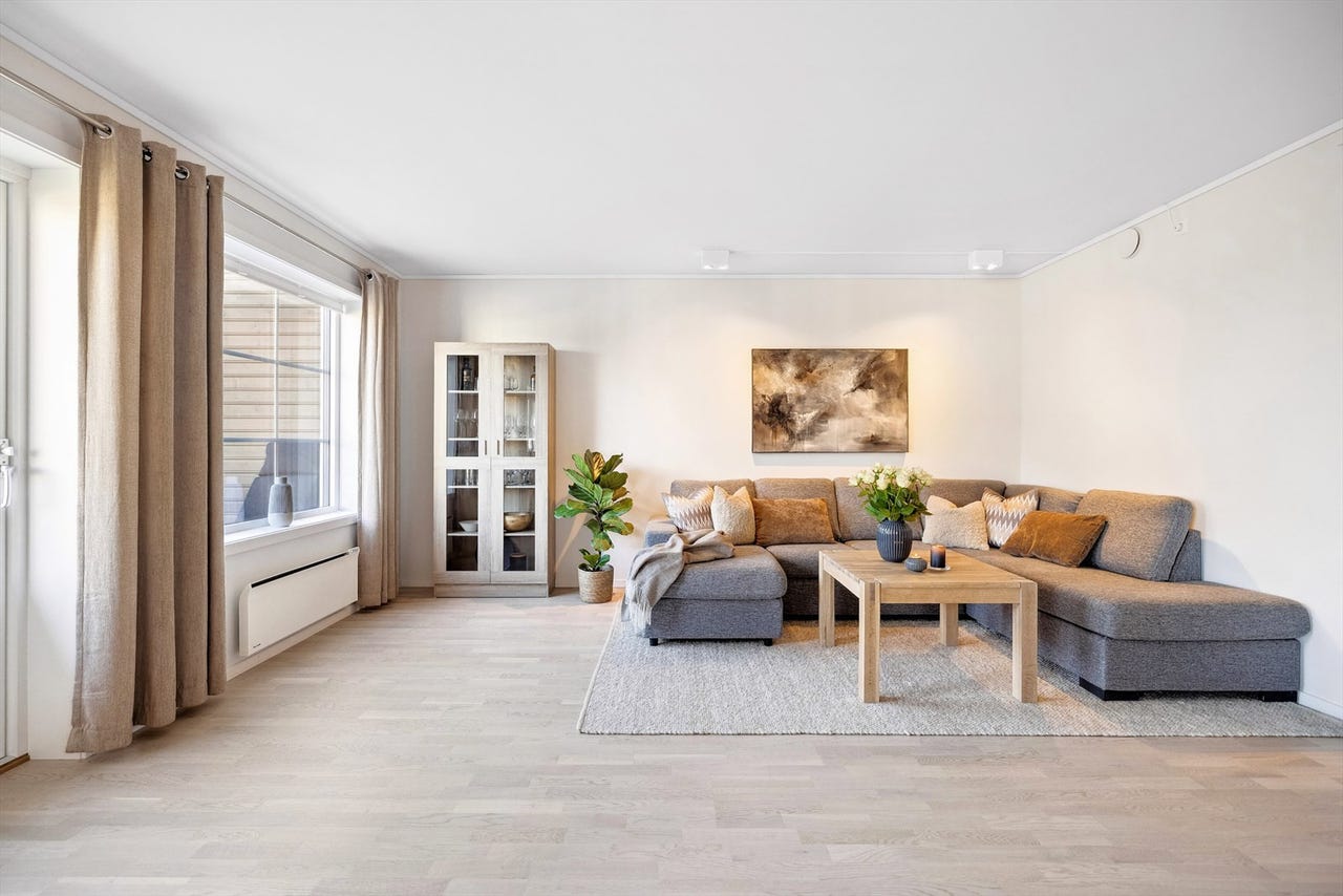 Leiligheten har en fin beliggenhet i et attraktivt boområde med umiddelbar nærhet til skog- og friareal, og det er gangavstand til barneskole, barnehager, matbutikk og flere servicetilbud. Dette er et godt sted å bo for liten og stor, i trivelige omgivelser, enten du er alene, i par eller en familie og her kan du flytte rett inn!
