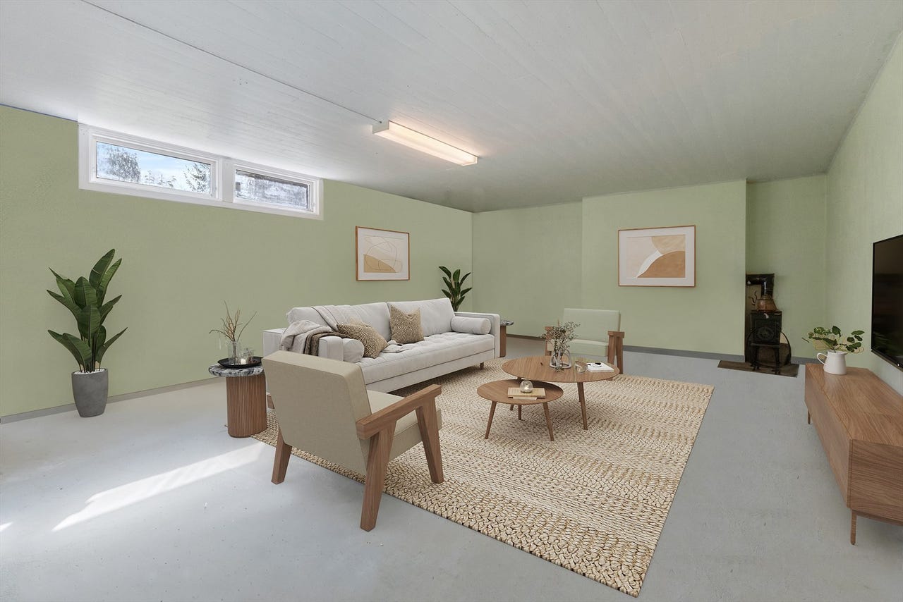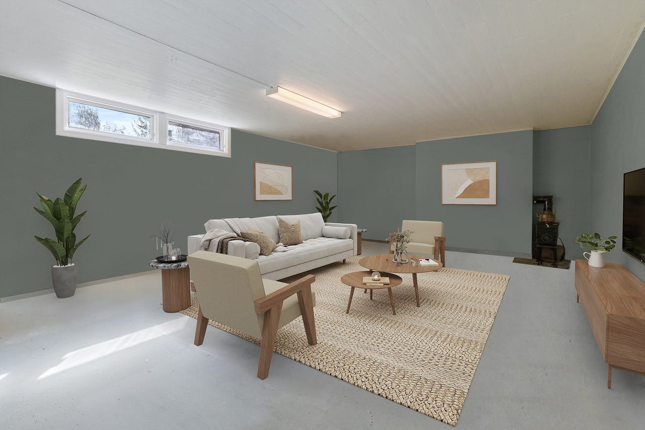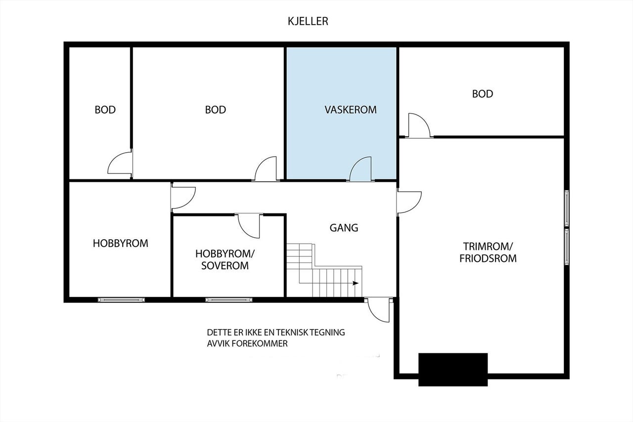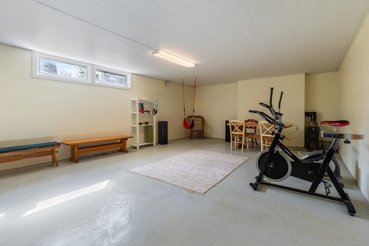 Kjeller med fritidsrom og boder god plass til trening, verksted eller lagring.