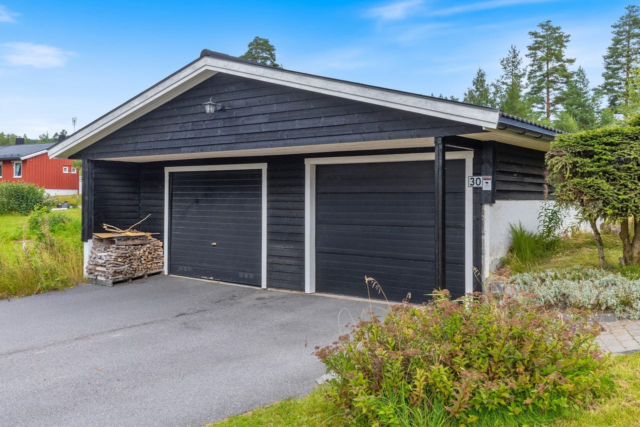 Dobbel garasje med elektrisk port og uttak til strøm på 16 amp. praktisk og romslig.