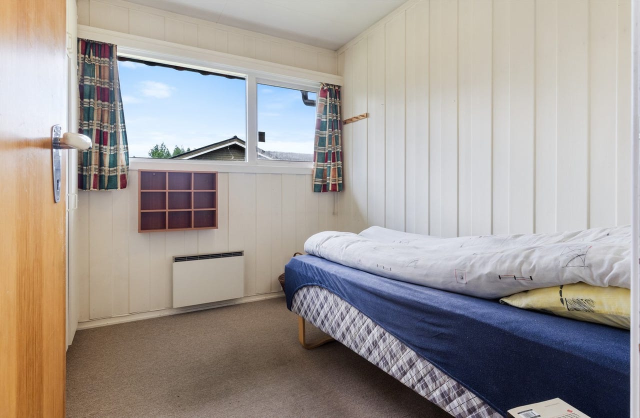 Soverom 3 er beliggende vegg i vegg mellom soverom 2 og 4 og har vindu i nordvestlig retning. Dette rommet er litt mindre enn soverom 2 og har en plassbygget dobbel garderobeløsning. Det er vegg til vegg teppe på gulv, blåmalt panel på vegg og plater i himling.