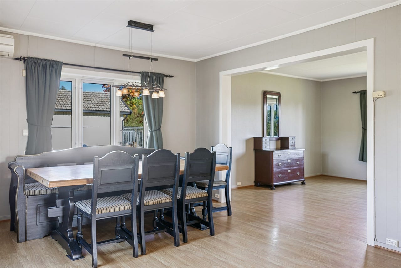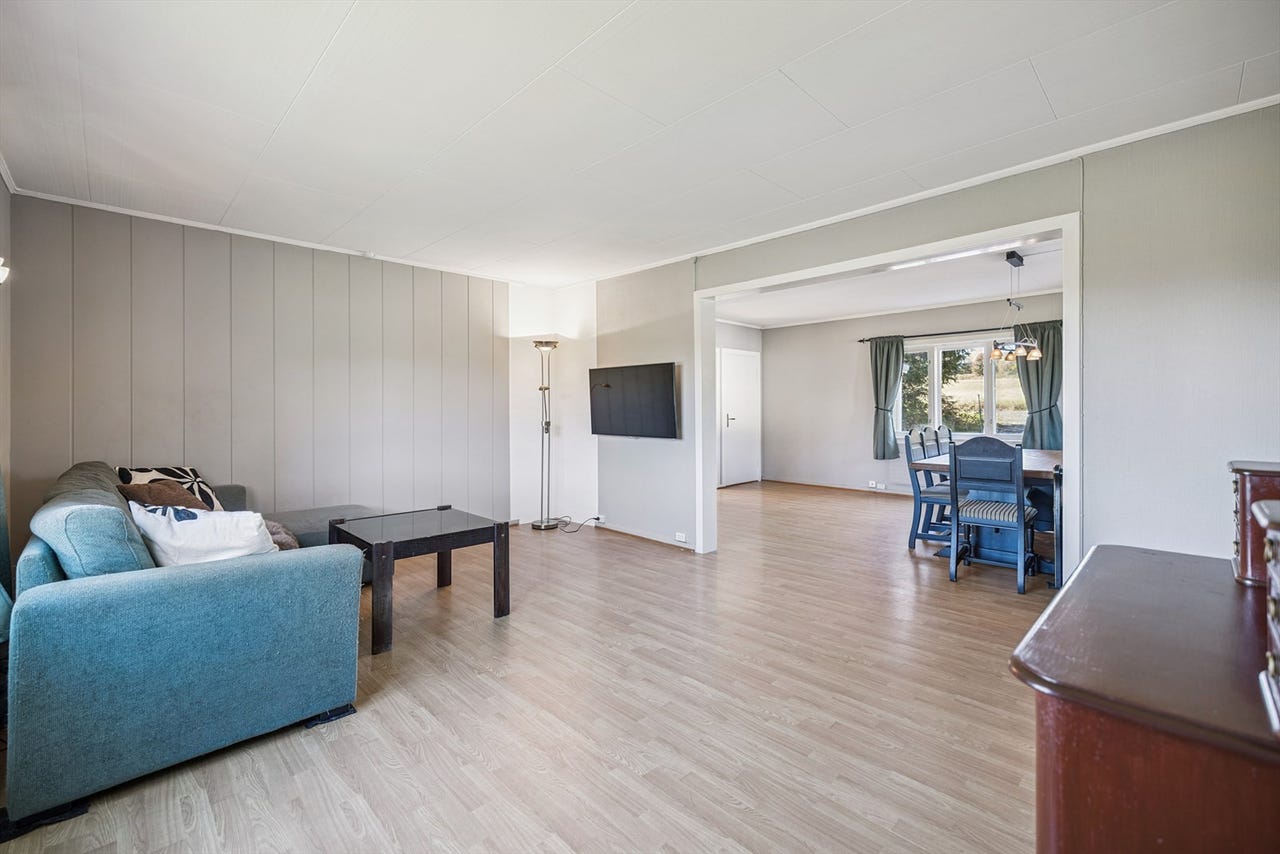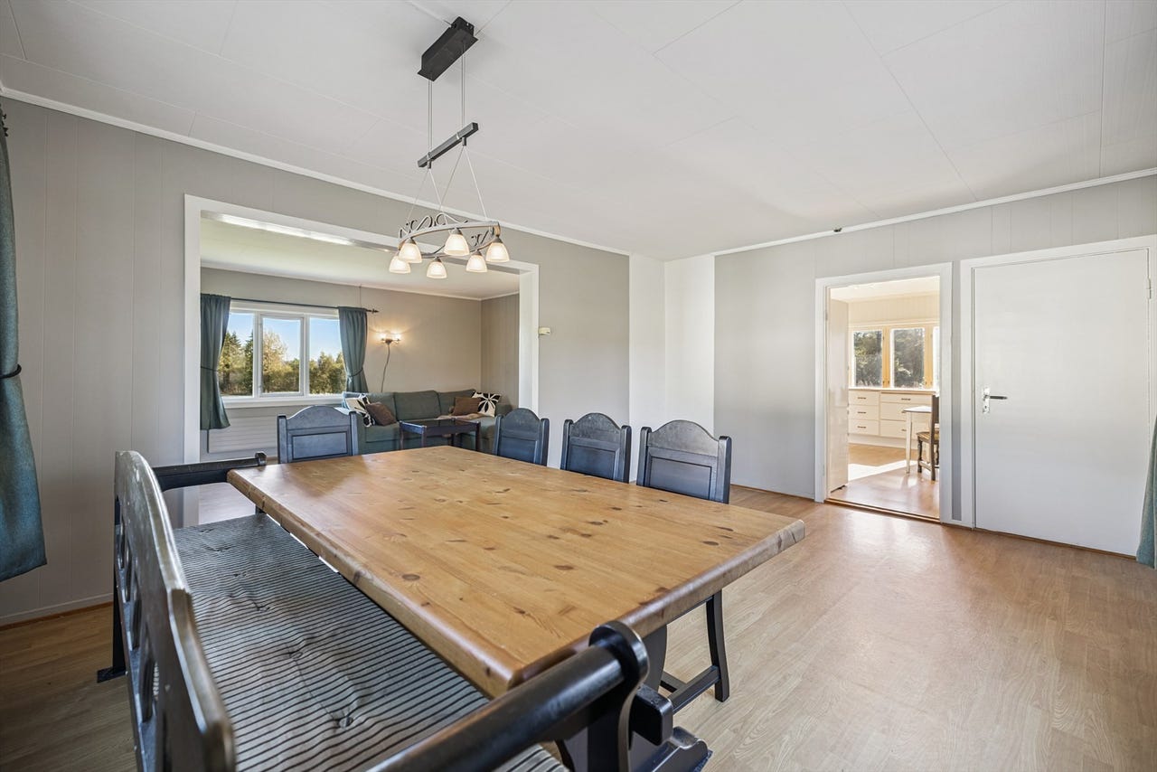 Her har vi gleden av å presentere en enebolig med 1½ etasje og kjeller. Boligen inneholder blant annet stue, spisestue, kjøkken, bad, toalettrom og 4 soverom.