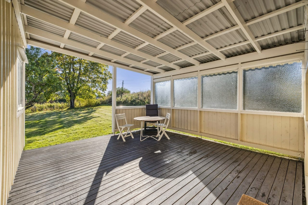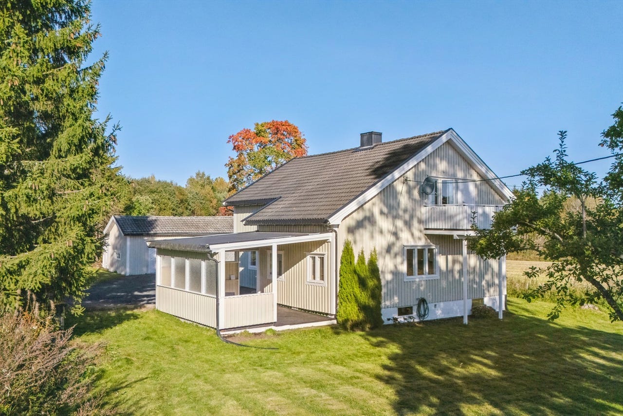 Overbygget terrasse mot vest. Frittliggende uthus/garasje. Nydelig, solrik og landlig tomt!