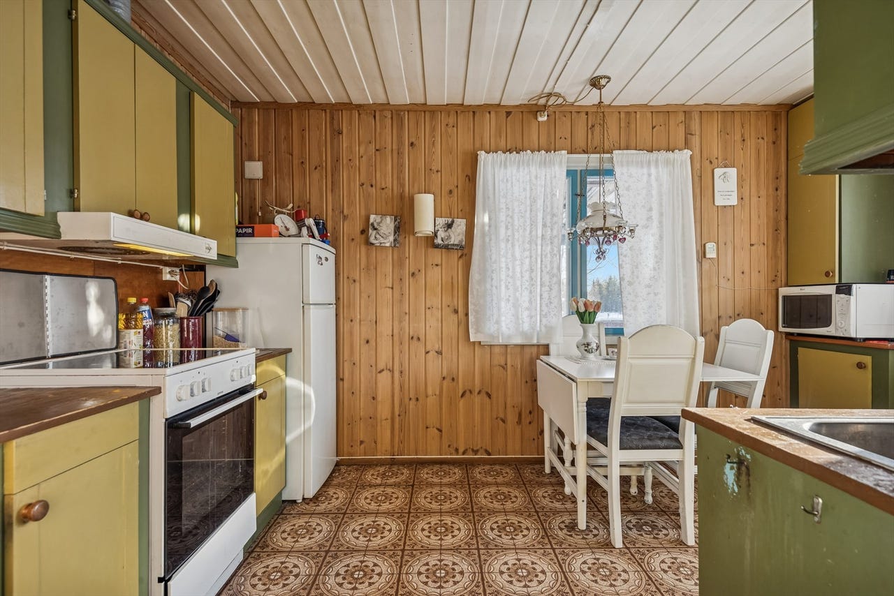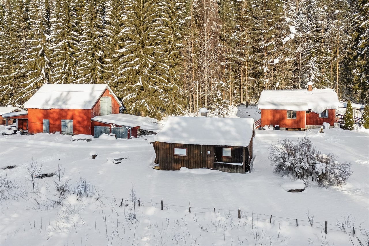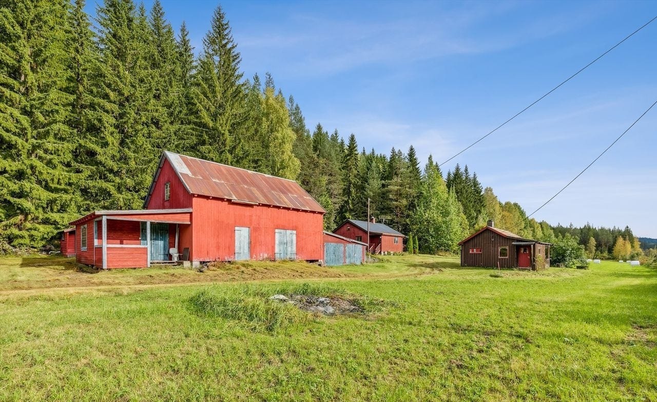 Her har vi gleden av å presentere et sjarmerende småbruk med en eldre enebolig, kårebolig og låve. Eneboligen går over en etasje med kjeller, innvendig adkomst. Inneholder stue, kjøkken, to soverom, gang og vindfang. Låven inneholder snekkerbod/hobbyrom, lager og garasje. Innlagt strøm. Kårebolig med store restaureringsbehov. Romslig tomt på 11,1 daa.