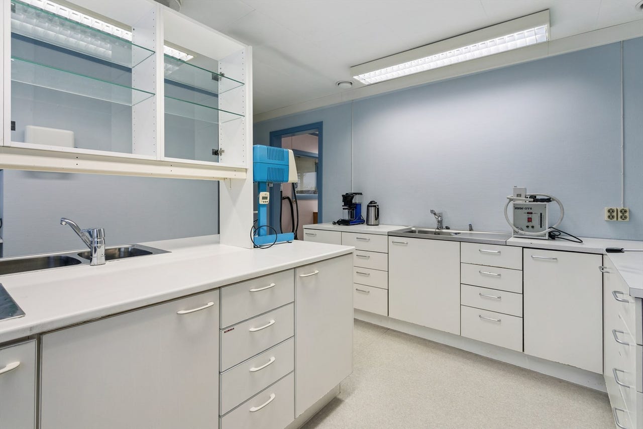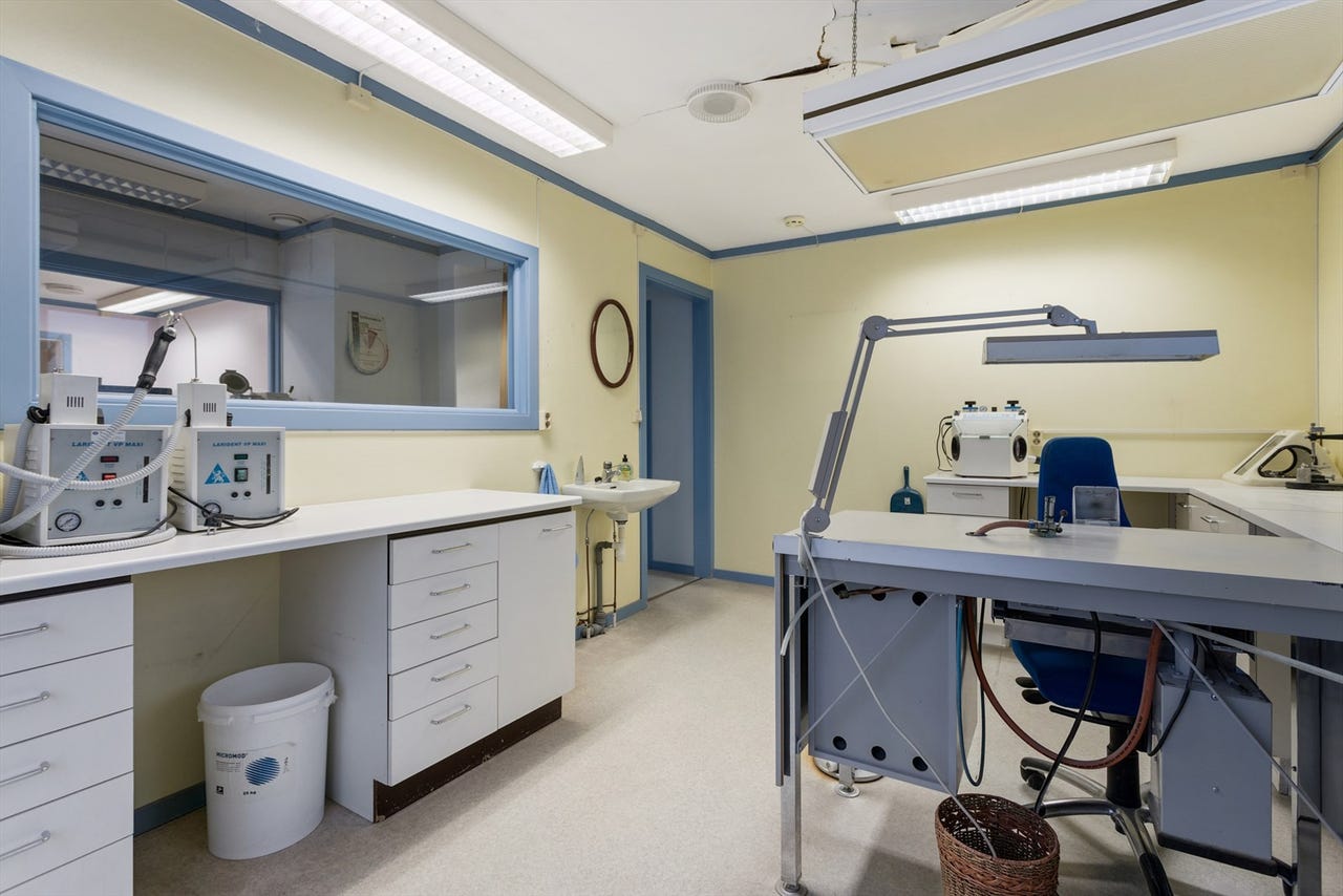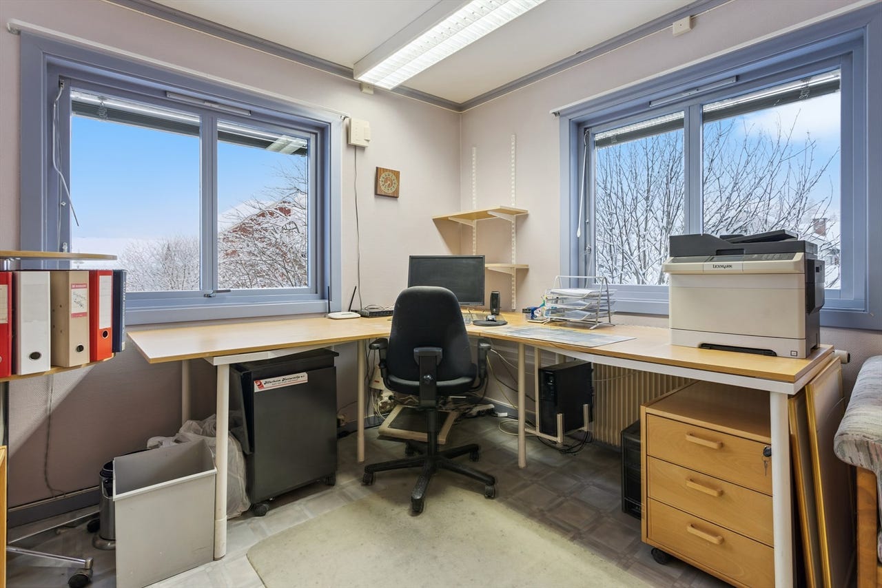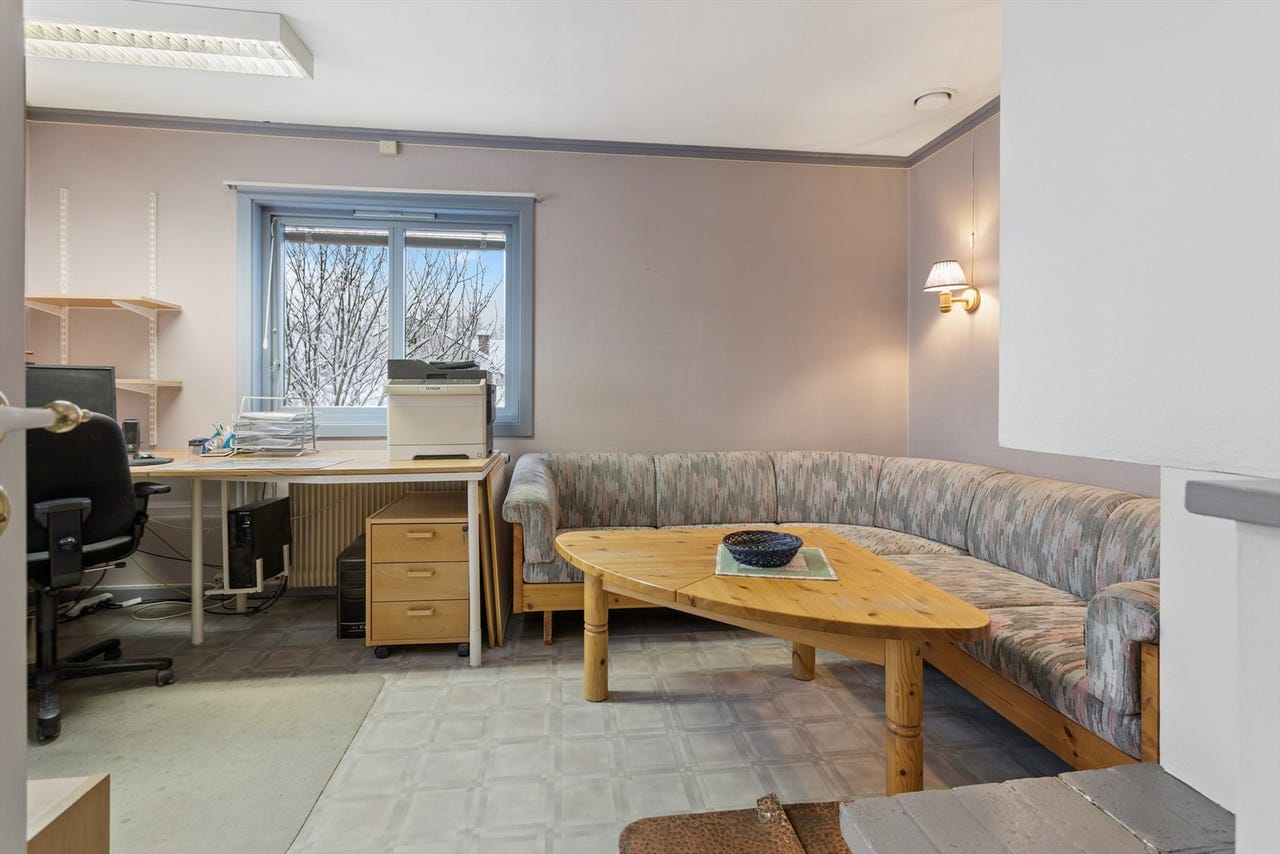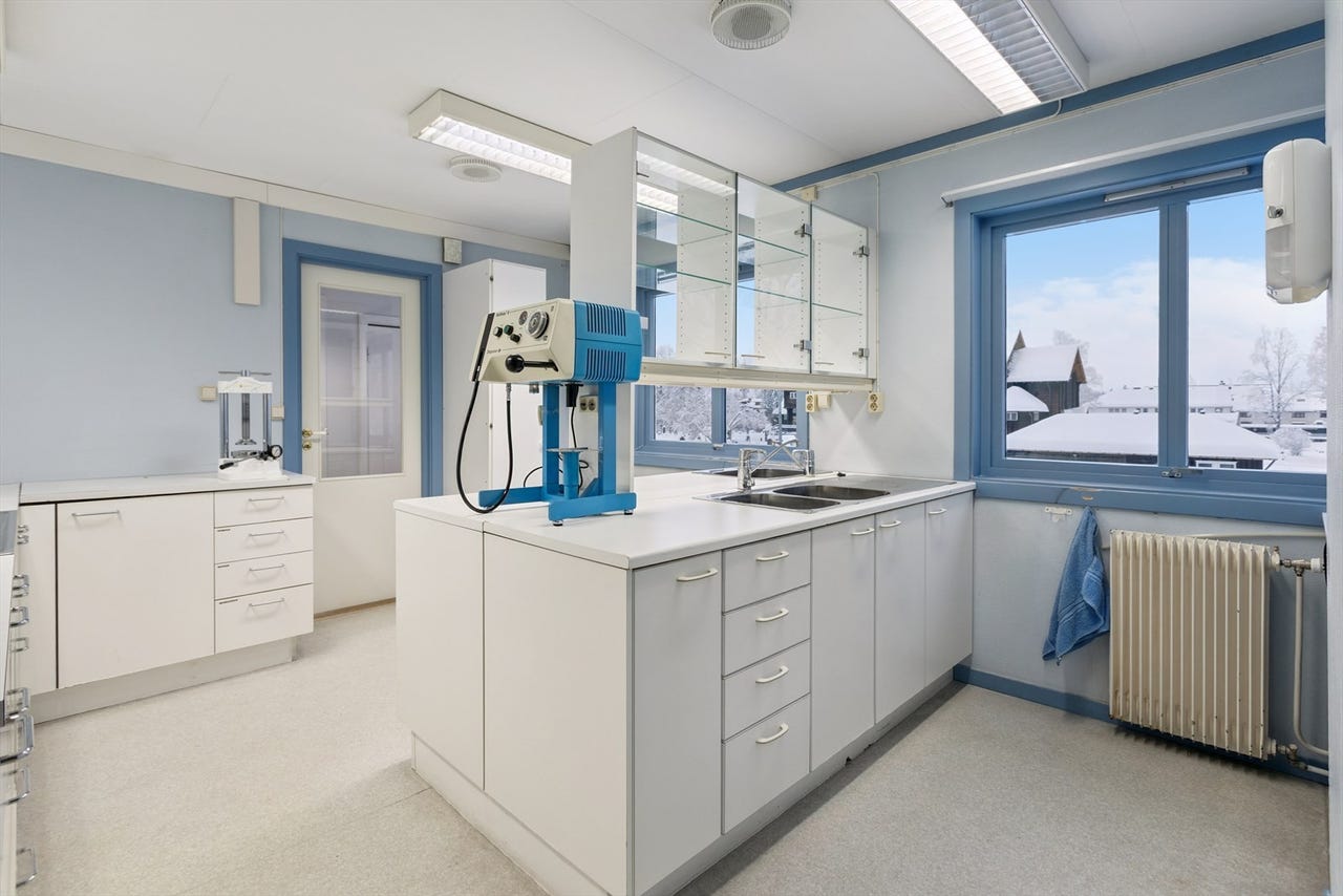 Her har vi gleden av å presentere næringsbygg med kjeller, 1.etg og 2.etg. Kjeller består av fellesarealer med trapperom/gang, fyrrom, garderober dusjrom, toalettrom, diverse boder og en blokkert kjellerutgang. 1.etg med felles trapperom og felles spiserom, og 2.etg med trapperom, venterom/resepsjon, adm. kontor (peisestue), toalettrom, 6 arbeidsrom/laboratorierom og ett kott.