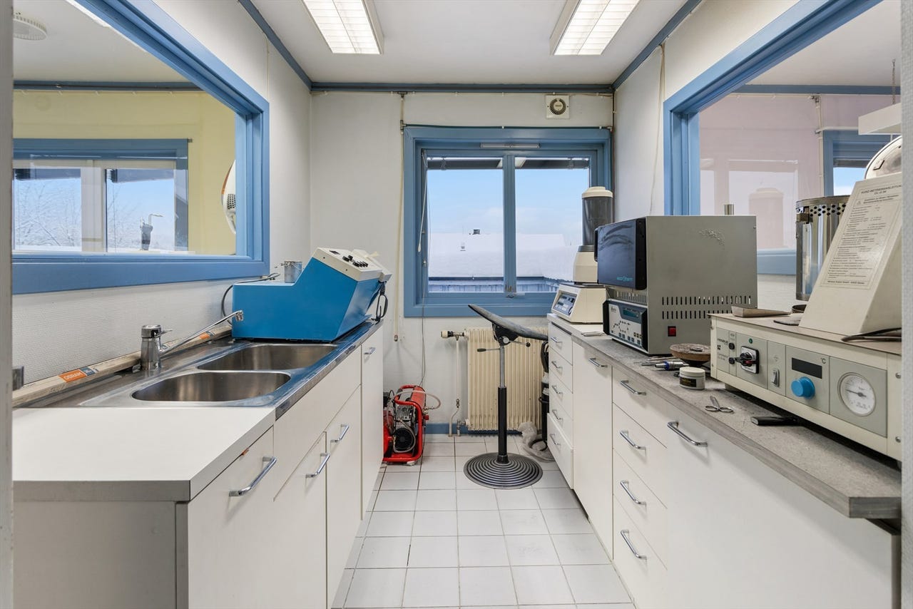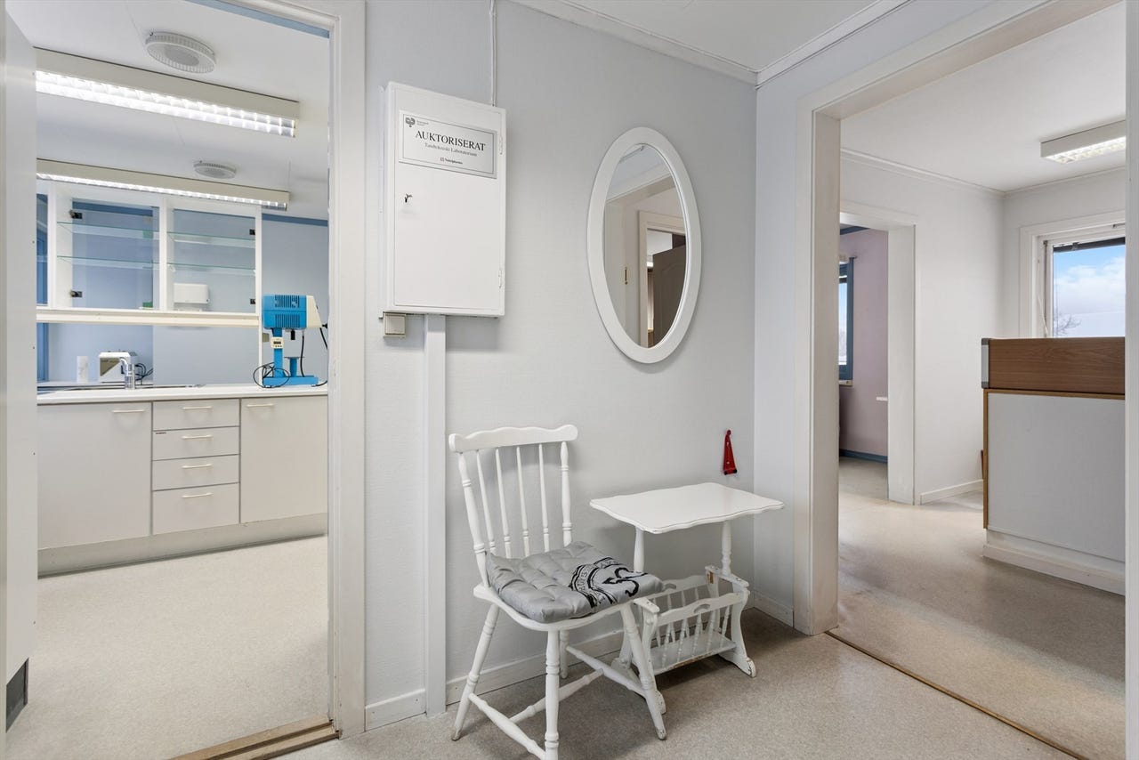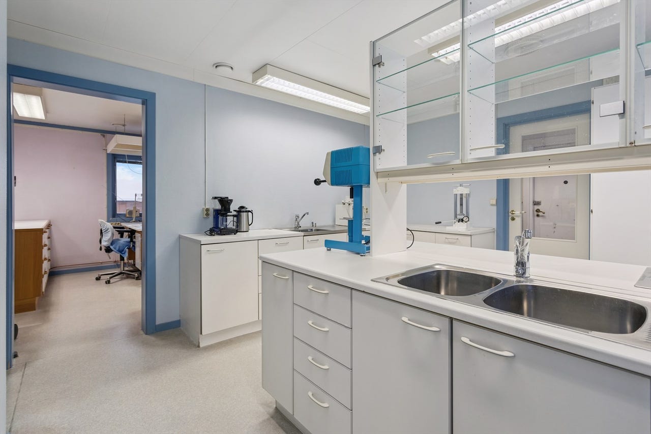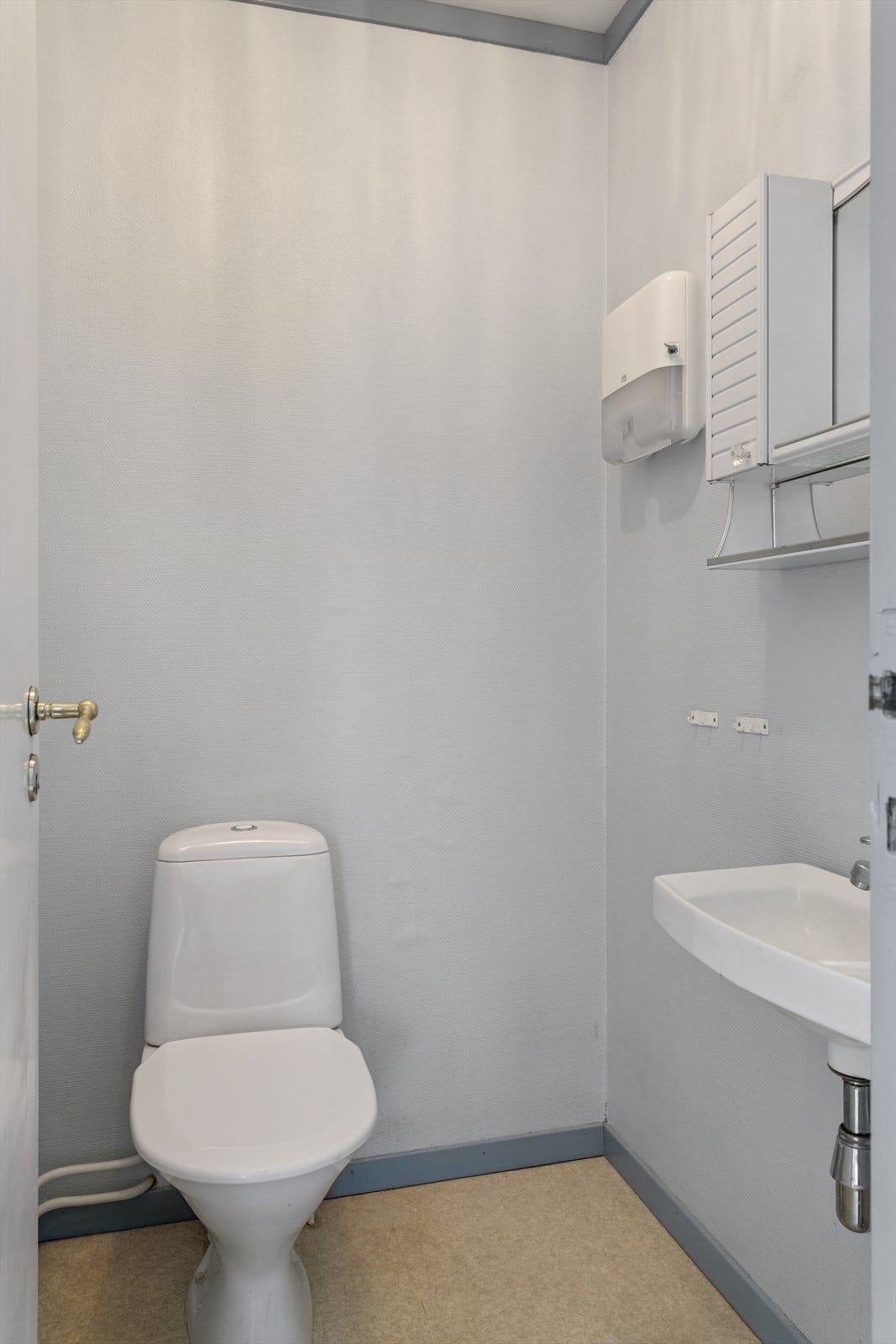 Her har vi gleden av å presentere næringsbygg med kjeller, 1.etg og 2.etg. Kjeller består av fellesarealer med trapperom/gang, fyrrom, garderober dusjrom, toalettrom, diverse boder og en blokkert kjellerutgang. 1.etg med felles trapperom og felles spiserom, og 2.etg med trapperom, venterom/resepsjon, adm. kontor (peisestue), toalettrom, 6 arbeidsrom/laboratorierom og ett kott.